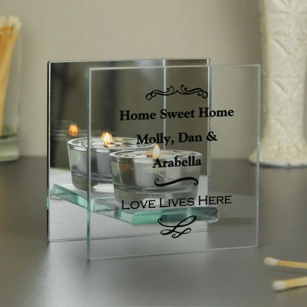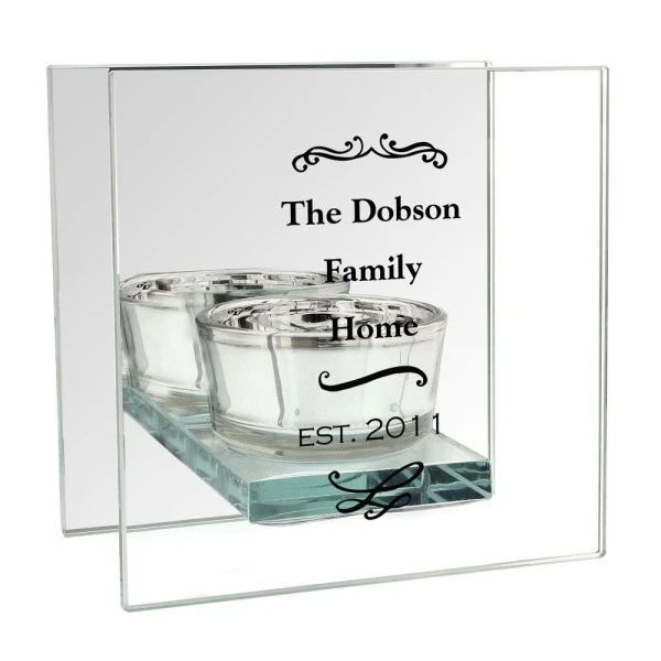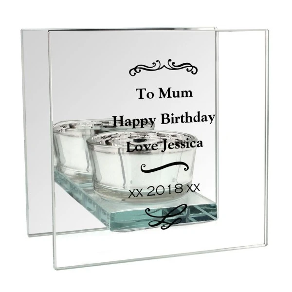 Personalise this “Antique Scroll” Mirrored Glass Tea Light Candle Holder with up to 4 lines of 15 characters. All personalisation will appear in UPPERCASE.