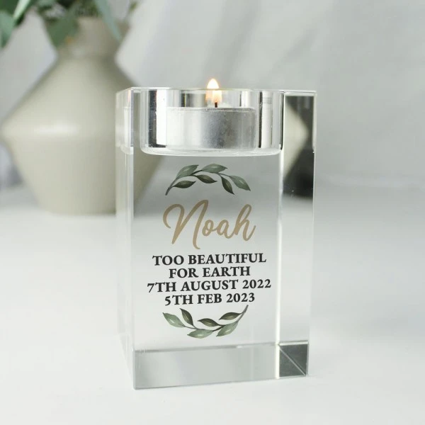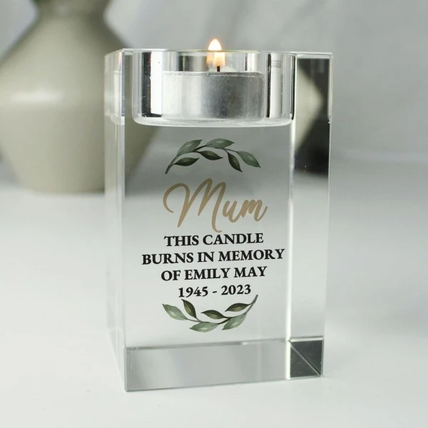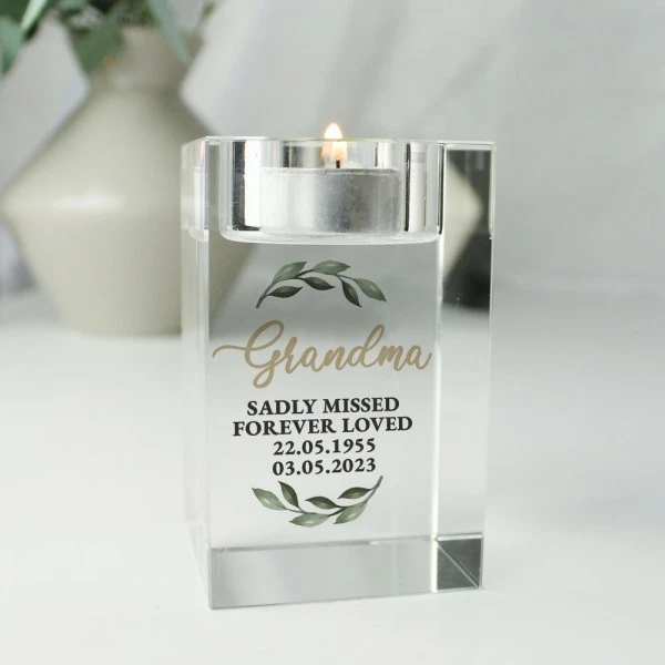 This Personalised Botanical Memorial Glass Tealight Holder is a lovely way to remember a loved one.