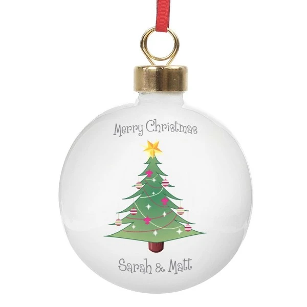Personalise this Christmas Tree Bauble with a line on the top of the bauble and one below, 15 characters each.
