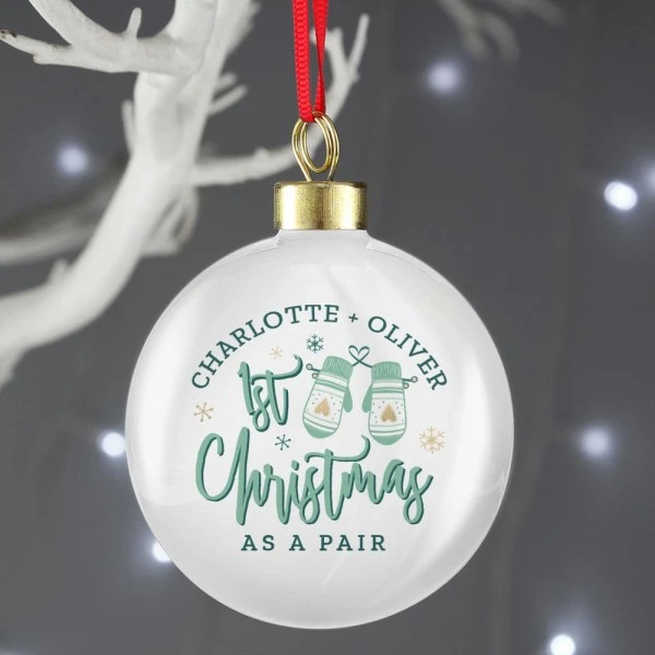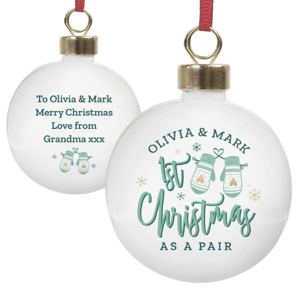 Celebrate your 1st Christmas together with this stylish Personalised “1st Christmas as a Pair” Bauble.