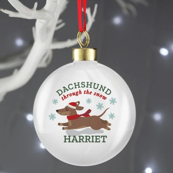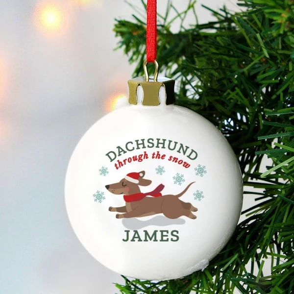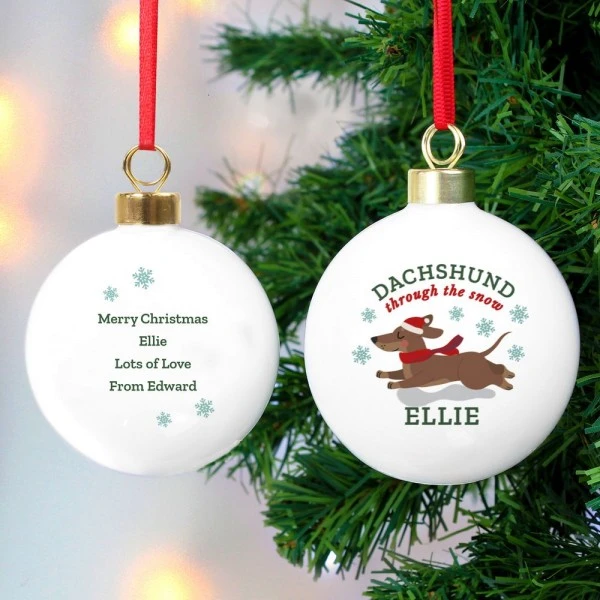 Our cute Dachshund through the snow bauble is sure to add a touch of personality to any Christmas tree.