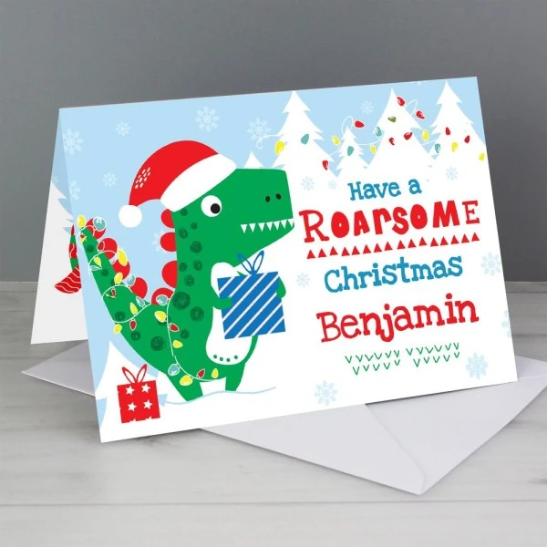 The text “Have a roarsome Christmas” is fixed and cannot be amended.