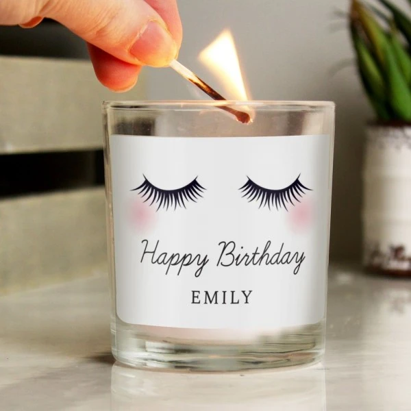 This stylish Personalised Eyelash Jar Candle will fill the room with a pleasant glow!