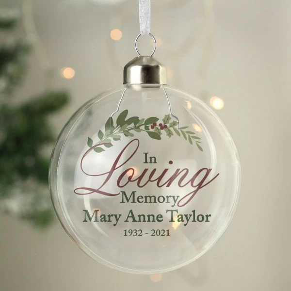 This Personalised In Loving Memory Glass Bauble is a great way to add a personal touch to the Christmas tree.