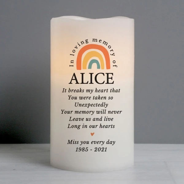 This lovely rainbow led candle is a lovely way to remember a loved one.