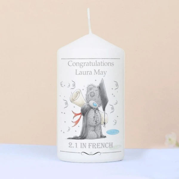 Personalise this “Me To You” graduation candle with a message of up to 3 lines of 15 characters per line. Line 3 will appear in UPPERCASE.