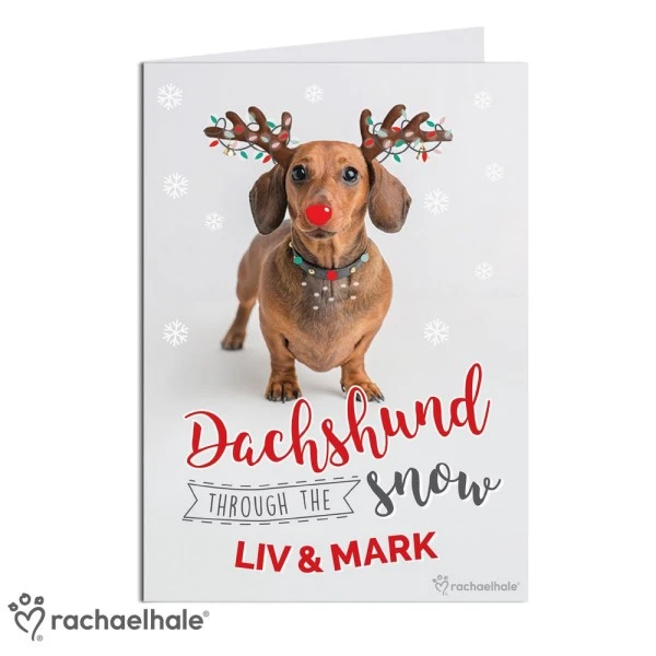 This adorable Personalised Rachael Hale Christmas Dachshund Through the Snow Card is the perfect card for that special someone at Christmas.